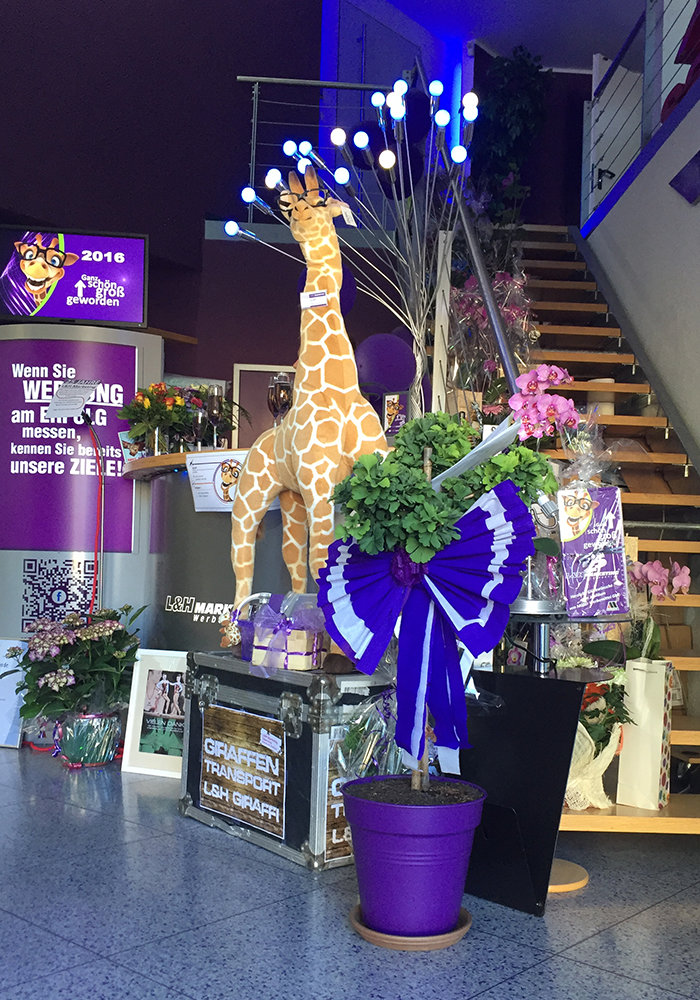 25 Jahre L&H Marketing Juni 21, 2019 Das Jahr der Giraffe – ganz schön groß geworden – als Kampagne für 2016: Unsere Feier anlässlich des 25jährigen Jubiläums im Hause L&H Marketing Werbeagentur:
